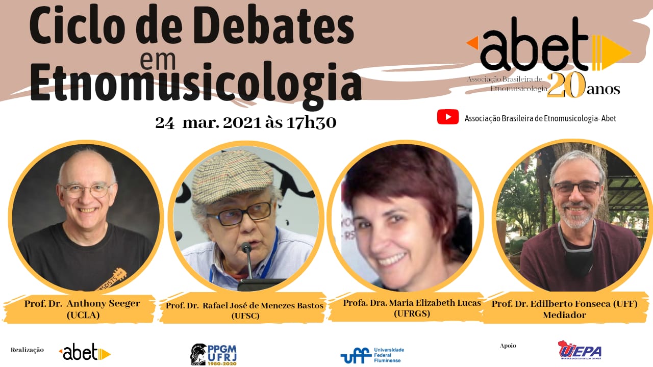 No dia 24 de março de 2021, às 17h30 (BRT), no canal no YouTube da ABET, o <Ciclo de Debates em Etnomusicologia> terá o seu quarto encontro, como parte da celebração dos 20 anos da Associação Brasileira de Etnomusicologia em 2021.